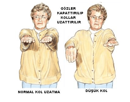 - Anormal: Hasta kollarını kaldırdığında bir kol aşağı düşüyor veya bir kolunu kaldıramıyor.