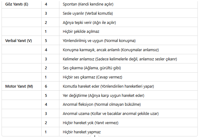 Glaskow Koma Skalası (GCS), bir hastanın bilinç durumunu ve nörolojik fonksiyonlarını değerlendirmek için kullanılan bir skaldır. Genellikle beyin yaralanmaları, travmalar, nörolojik hastalıklar ve koma gibi durumlarda hastanın bilinç seviyesini objektif olarak ölçmek amacıyla kullanılır. GCS, 3 farklı alanda puanlama yapar: göz yanıtı, verbal yanıt ve motor yanıt. Bu üç alandaki puanların toplamı, hastanın bilinç durumunu gösterir.