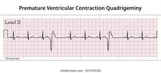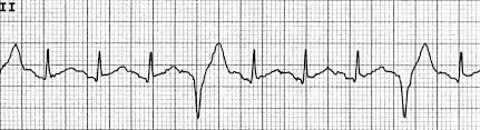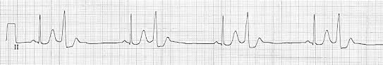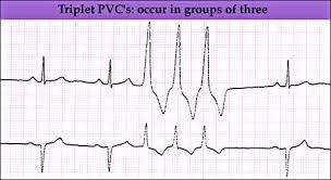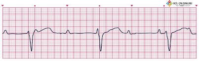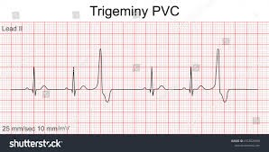 2. Trigemini PVC: iki normal dalgadan sonra gelir. İlaç müdahalesi gelmez fakat sıkı takip gerektirir. Hastanın öyküsünde ventriküler bir aritmi söz konusu ise doktora danışarak Amiadoron yapılabilir.