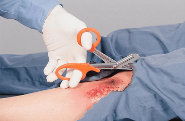 - Yanmış alandaki deriler kaldırılmadan giysiler çıkarılır,