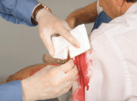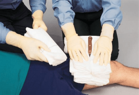- Yara temiz bir bezle örtülür (nemli bir bez),
